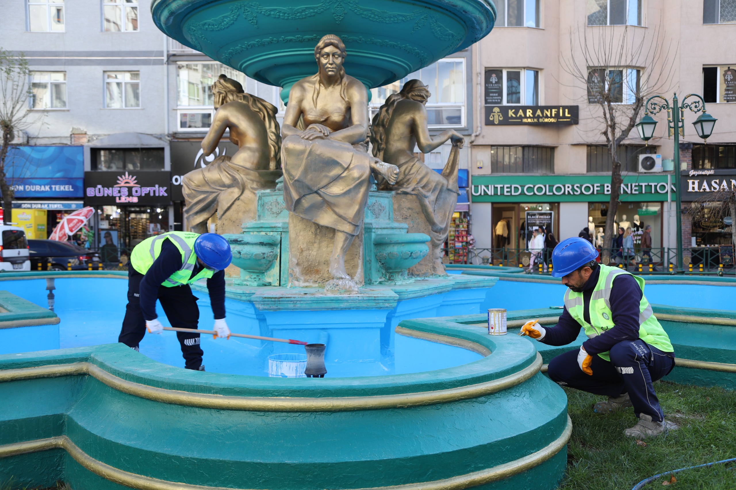 Eskişehir Büyükşehir Belediyesi, şehir merkezindeki süs havuzlarında bakım çalışması gerçekleştiriyor.
