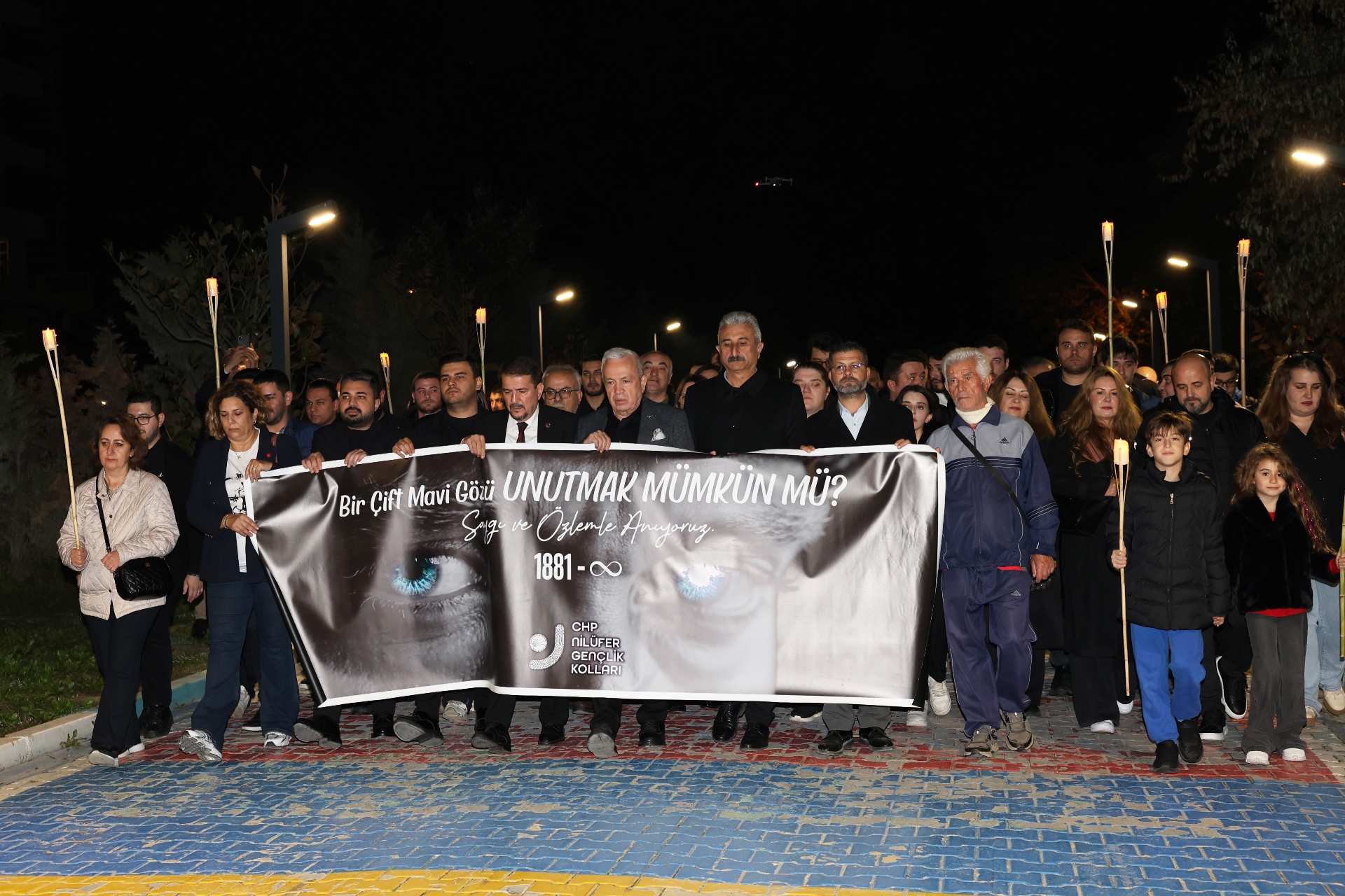 Resmi tören öncesinde de CHP Nilüfer Gençlik Kolları ile birlikte yine Cumhuriyet Meydanı’nda, “10 Kasım Atatürk’ü Anma Yürüyüşü ve Saygı Nöbeti” düzenlendi. Nilüfer Belediye Başkanı Şadi Özdemir ve eşi Nuray Özdemir’in yanı sıra CHP İl Başkanı Nihat Yeşiltaş, CHP Nilüfer İlçe Başkanı Özgür Şahin, CHP İl Gençlik Kolları Başkanı Berkcan Bora, CHP Nilüfer İlçe Gençlik Kolları Başkanı Yiğit Yalçınsoy, Nilüfer Belediye Başkan Yardımcıları, meclis üyeleri ve çok sayıda vatandaş, Atatürk’e olan sevgilerini ve bağlılıklarını gece boyunca tuttukları saygı nöbetiyle gösterdi.